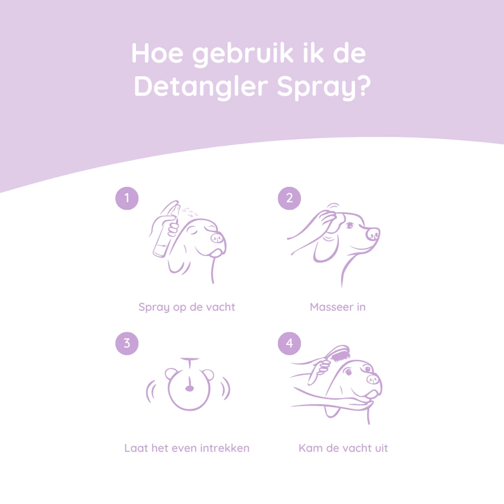 - Shampoo en anti-klit spray voor honden met een krullende vacht