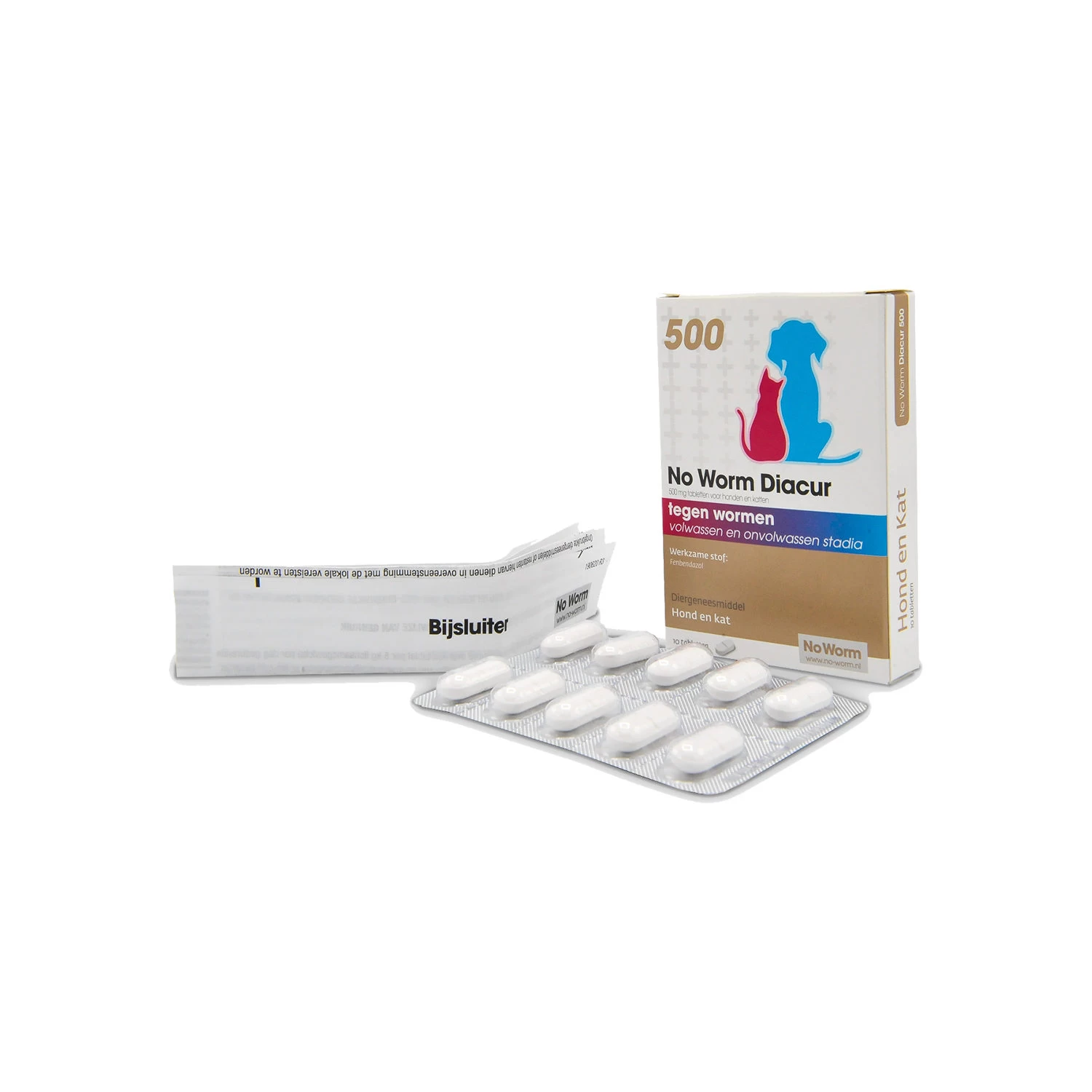 - No worm Diacur 500: 1 tablet per 10 kg lichaamsgewicht gedurende 3 opeenvolgende dagen