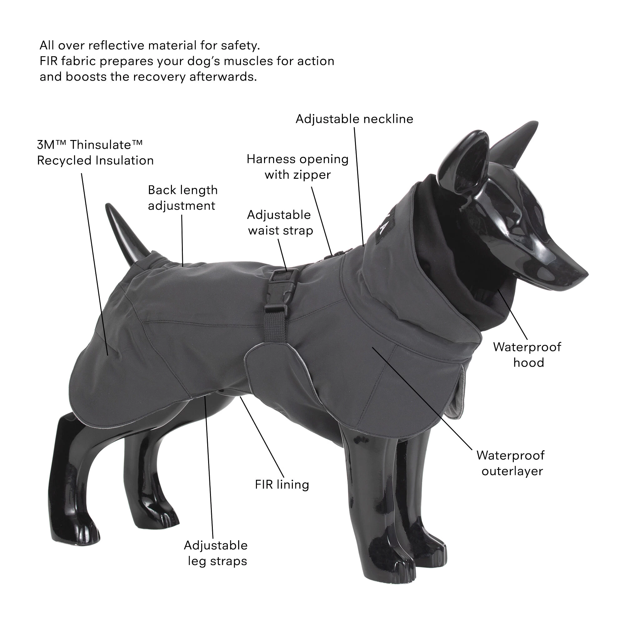 De PAIKKA Visibility Winter Jacket houdt uw hond warm, droog en veilig in verschillende weersomstandigheden. De jas is gemaakt van een 100% waterdichte stof en de naden zijn getaped. Daarnaast is de jas ook reflecterend, waardoor uw viervoeter ook in het donker nog goed te zien is. De warme Thinsulate-isolatie vulling is gemaakt van 78% gerecyclede materialen. De Speciale Far Infrarood (FIR) voering ondersteunt het herstel van uw viervoeter na inspanning en kan ook helpen om blessures te voorkomen. Ook beschikt de winterjas over een verstelbare halslijn, taille, ruglengte en beenriemen. Met de PAIKKA Visibility Winter Jacket kan uw hond dus comfortabel, droog en veilig genieten van een wandeling.