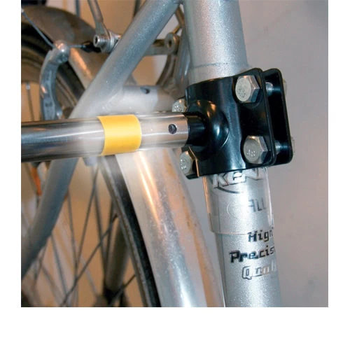 De fietsbeugel is gemaakt van metaal. Het bijgeleverde riempje is zwart.